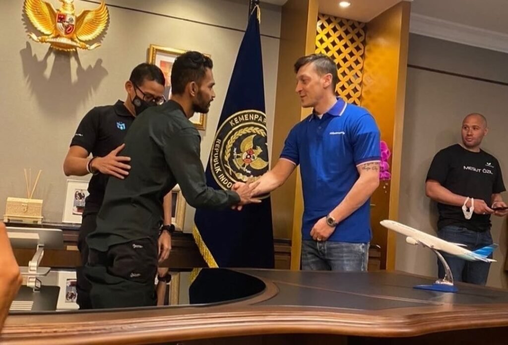 Infoacehtimur.com | Nasional – Eks bintang Real Madrid dan Arsenal, Mesut Oezil bertemu dengan anak angkat Cristiano Ronaldo, Martunis, di Indonesia. Mesut Oezil dan Martunis bertemu di kantor pusat Kementerian Pariwisata dan Ekonomi Kreatif Republik Indonesia (Kemenparekraf). Dalam pertemuan tersebut, Mesut Oezil sebenarnya diagendakan bertemu dengan Menteri Pariwisata dan Ekonomi Kreatif, Sandiaga Uno. Namun, Sandiaga Uno secara khusus turut mengundang Martunis untuk datang ke kantornya. Sandiaga Uno kemudian memperkenalkan Mesut Oezil dengan anak angkat Cristiano Ronaldo tersebut. Sandiaga Uno, Martunis, dan Mesut Oezil lalu mengabadikan momen kebersamaan mereka dengan berfoto. Martunis tak bisa menutupi kebahagaiannya bertemu dengan Mesut Oezil di…