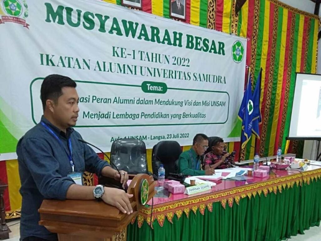 Infoacehtimur.com | Langsa – Akhirnya Dr. Firman Dandy, SE, M.Si terpilih sebagai Ketua Umum Ikatan Alumni (IKA) Universitas Samudra (Unsam) periode 2022-2026 pada Mubes 1 IKA Unsam di aula 1 kampus setempat, Sabtu (23/07/2022). Sidang pleno yang dipimpin, Muslim A Gani, SH, Ray Iskandar, SE dan Ngatiman, SE sebelumnya berlangsung alot hingga akhirnya LPJ pengurus diterima. Kemudian, dalam sidang tersebut melahirkan program kerja kedepan, perbaikan AD/ART yang signifikan untuk mubes empat tahun kedepan hak suara masing-masing alumni satu suara atau dikenal One Man one vote. Buka Update: Berita Aceh Timur dan AcehWakili ISEI, Firman Dandy Ikuti Join Seminar On Strategic…
