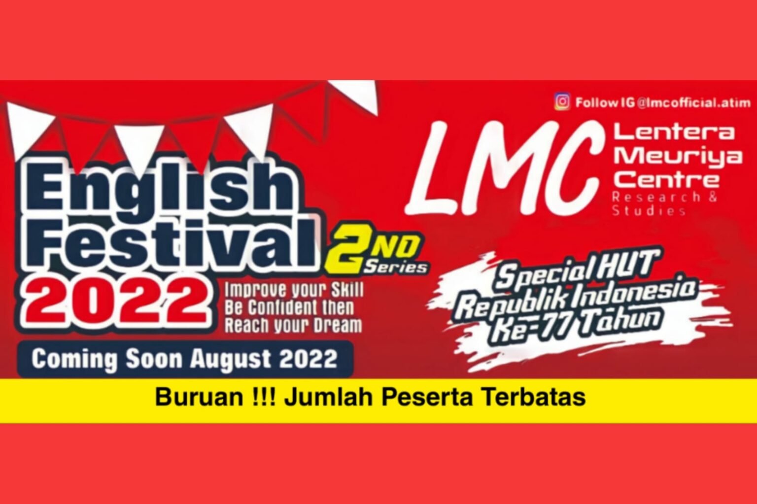Infoacehtimur.com / Aceh – Kamu ada belajar bahasa inggris ? siap-siap untuk English Festival season 2 yang akan diselenggarakan kembali oleh Lentera Meuriya Center (LMC) Riset & Studies pada bulan Agustus 2022. Dr. Firman Dandy menyebut bahwa pertisipasi luar biasa dari generasi muda aceh menjadi semangat bagi pihaknya untuk tetap menjadikan English Festival sebagai agenda rutin tahunan. Diketahui, English Festival season 1 yang dilaksanakan pada awal tahun 2022 memperlombakan 5 kategori lomba. Selain peserta asal Aceh Timur, LMC English Festival turut diikuti oleh peserta dari 5 kabupaten lainnya, yakni; Kabupaten Aceh Tamiang, Kota Langsa, Aceh Utara, serta Aceh Timur Sebagai…