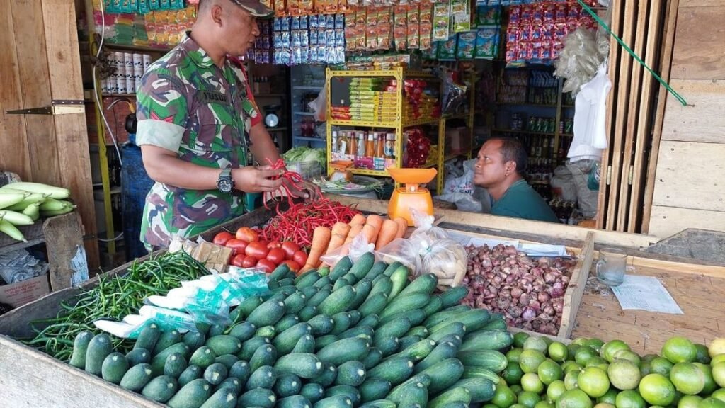 Infoacehtimur.com | Aceh Timur – Jelang perayaan idul Adha 1443 H yang jatuh pada tanggal 10 Juli 2022, permintaan sembako selalu meningkat dan tidak menutup kemungkinan dimanfaatkan oknum pedagang yang menaikan harga. Guna menyikapi hal tersebut Babinsa Koramil 06/Darul Aman Kodim 0104/Aceh Timur Koptu Saidul Abrar turun kesejumlah pasar tradisional yang ada di Desa Kampung Keude, Kecamatan Darul Aman, Aceh Timur, Rabu (06/07/2022). Disela kegiatan, Koptu Saidul Abrar mengatakan. “Hari ini kami sebagai aparat Komando Kewilayahan mengecek dengan turun langsung ke pasar tradisional, mengantisipasi kenaikan harga bahan-bahan sembako”. Buka Update: Berita Aceh Timur dan AcehBabinsa Jenguk Nek Saripah Terbaring sakit…