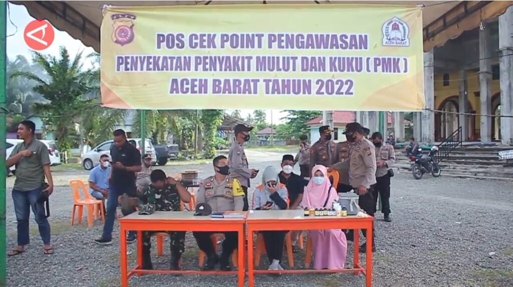 Infoacehtimur.com | Aceh – Kendaraan pengangkut hewan ternak yang hendak menuju ke Kabupaten Aceh Barat, Aceh, diminta untuk putar balik oleh petugas pos penyekatan, sehingga tidak bisa masuk sekalipun membawa dokumen lengkap. Tindakan yang dilakukan oleh petugas gabungan dari TNI, Polri, dan Dinas Perkebunan dan Peternakan setempat, merupakan langkah untuk mencegah penyebaran Penyakit Mulut dan Kuku (PMK) pada hewan ternak di Aceh Barat. Video dan sumber : Antara / Aprizal Rachmad/Dudy Yanuwardhana/Rinto A Navis