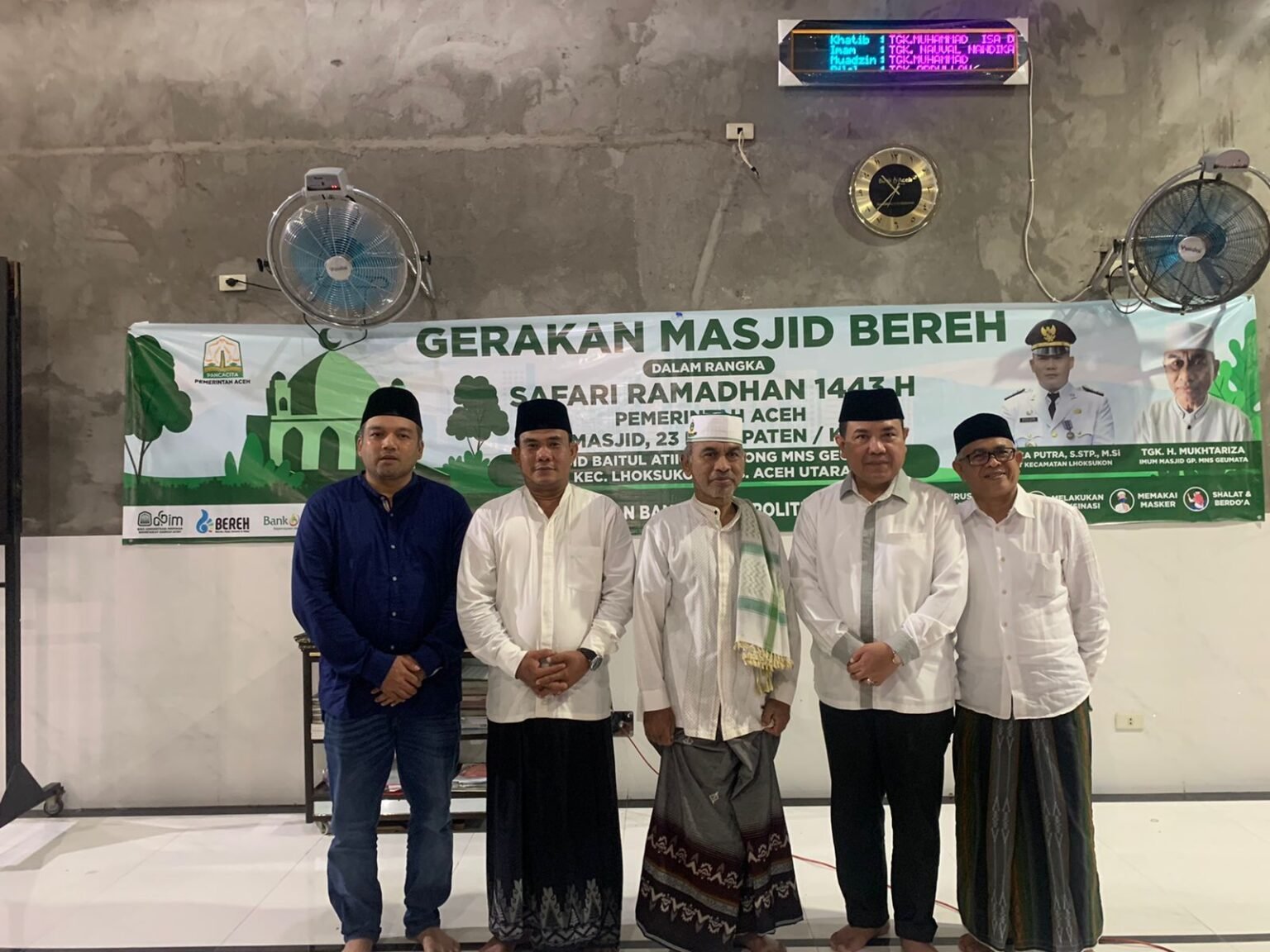 Infoacehtimur.com | Lhoksukon – Bupati Aceh Utara H.Muhammad Thaib melalui Kaban Kesbangpol Aceh Utara Muhammad Zulfadli,S.Sos sambut kunjungan tim Safari Ramadhan Pemerintah Aceh di Masjid Baitul Atiq Heumata Lhoksukon, Sabtu 9/04/22. Kedatangan tim dipimpin Oleh Kaban Kesbangpol Aceh Drs Mahdi Efendi didampingi Para Kabid dan staf membawa misi program Pemerintah Aceh menjalankan kunjungan silaturahmi keseluruh kabupaten kota secara serentak dengan jargon “gerakan mesjid bereh” dalam rangka safari ramadhan 1443 H di Mesjid Baitul Atiq Gampong Mns Geumata Kecamatan Lhoksukon. Kepala Badan Kesbangpol Aceh Drs Mahdi Efendi beserta jajaran hadir mewakili pemerintah aceh mengatakan program ini berkaitan dengan program pemerintah Aceeh…