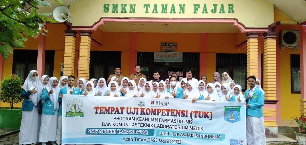 INFOACEHTIMUR.COM | Berdasarkan Pedoman Penyelenggaraan Uji Kompetensi Keahlian (UKK) tahun pelajaran 2021/2022, Uji Kompetensi Keahlian (UKK) adalah proses penilaian akhir bagi siswa SMK. Dalam pelaksanaannya, Uji Kompetensi Keahlian dapat dilaksanakan dengan bekerja sama dengan Lembaga Sertifikasi Profesi (LSP) atau dapat juga dilaksanakan secara mandiri dengan berpedoman pada instrumen UKK yang disusun pemerintah. SMKN Taman Fajar mengadakan uji kompetensi keahlian bekerja sama dengan LSP ASNAKES Indonesia untuk kompetensi keahlian Farmasi dan Teknologi Laboratorium Medik. Uji kompetensi Keahlian (UKK) ini disebut juga dengan Uji Sertifikasi Kompetensi (USK). Kepala SMKN Taman Fajar, Azwar Malik, R. S.Pd mengatakan : “UKK atau USK untuk kompetensi…