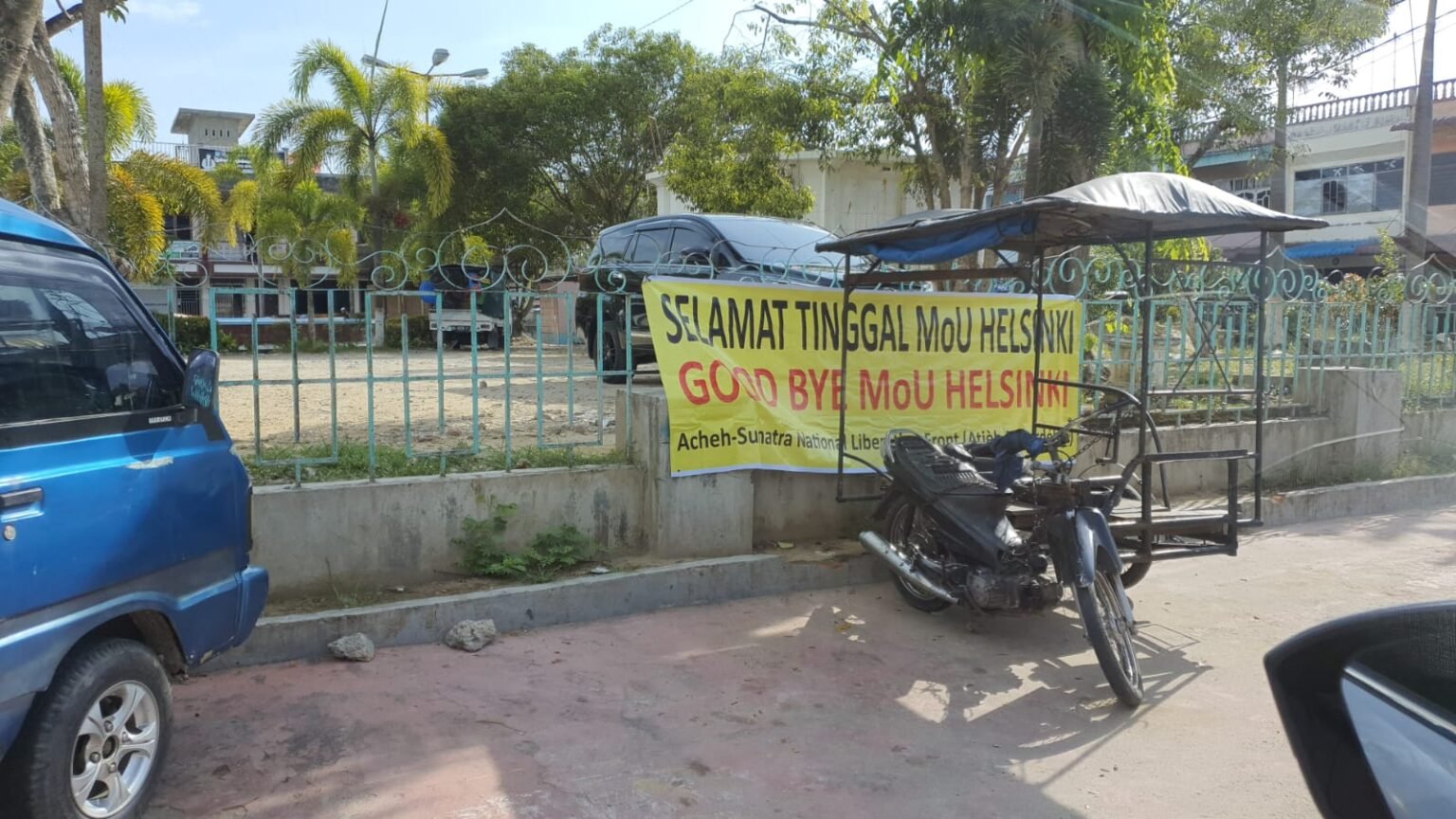 INFOACEHTIMUR.COM | Beredar dua spanduk bertuliskan ‘SELAMAT TINGGAL MOU HELSINKI’ di pagar Masjid Darul Falah dan Masjid Nurul Ikhlas Gampong Blang, Kecamatan Langsa Kota, Kota Langsa. Ahad (20/03/2022). Dalam spanduk di pagar Masjid Agung Darul Falah di bagian bawah tertulis ‘GOOD BYE MOU HELSINKI’ dan diteruskan dengan tulisan ‘Acheh-Sumatra National Liberation Front (Atjeh Meurdehka)’. Sementara, terdapat satu lagi yang dipasang di pagar Masjid Nurul Ikhlas Gampong Blang tertulis ‘KEMERDEKAAN ITU ADALAH HAK SEGALA BANGSA / INDEPENDENCE IS THE INALIENABLE RIGHT OF ALL NATIONS’ tertanda ‘Acheh-Sumatra National Liberation Front (Atjeh Meurdehka)’. Dilihat Koalisi.co, spanduk tersebut pada Ahad pagi sekira pukul 07.30…