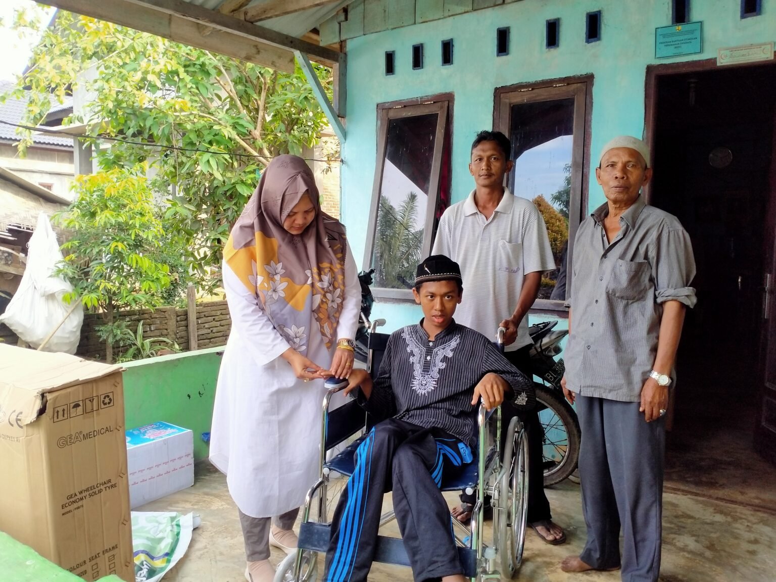 INFOACEHTIMUR.COM | Husaini (17) tersenyum bahagia setelah dapat kursi roda dari Elma Zalmi merupakan Dewan Perwakilan Rakyat Kabupaten/Kota (DPRK) Aceh Timur dari Fraksi Demokrat, Kamis 10 Maret 2022. Husaini diketahui seorang anak penyandang disabilitas atau cacat fisik sejak lahir yang tinggal di Desa Aramiyah, Kecamatan Birem Bayeun, Aceh Timur. “Kursi roda yang kami berikan ini sebagai wujud kepedulian wakil rakyat ini kepada kaum disabilitas,” kata Elma Zalmi, Kamis (10/3) kepada infoacehtimur.com. Elma Zalmi mengatakan, saya sangat memprihatikan melihat kondisi anak penyandang disabilitas sejak lahir Seperti Husaini. Mengingat nya, lanjut Elma Zalmi, kepikiran kondisi Husaini memiliki penyandang disabilitas membuat saya tak…