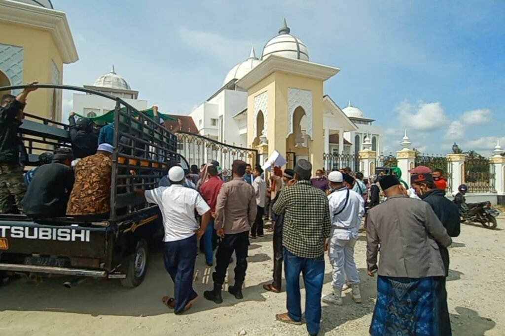 Lhoksukon | Tak terima anaknya divaksin Covid-19, massa yang menamakan Gerakan Penuntut Keadilan (GPK) Kabupaten Aceh Utara demo DPRK Aceh Utara, Kamis, 3 Februari 2022. Massa yang diperkirakan yang berjumlah lebih dari 100 orang itu yang berasal dari berbagai wilayah di Aceh Utara hadir di depan Kantor DPRK Aceh Utara. Massa aksi mulai menggelar aksi pada sekitar pukul 10.30 WIB, hal tersebut molor dari informasi yang sebelumnya beredar info di grup whatsapp wartawan serta grub humas lainnya, bahwa undangan aksi demo pada pukul 09.00 WIB. Dalam aksi tersebut yang tidak berikan izin oleh pihak kepolisian setempat untuk masuk, massa juga…