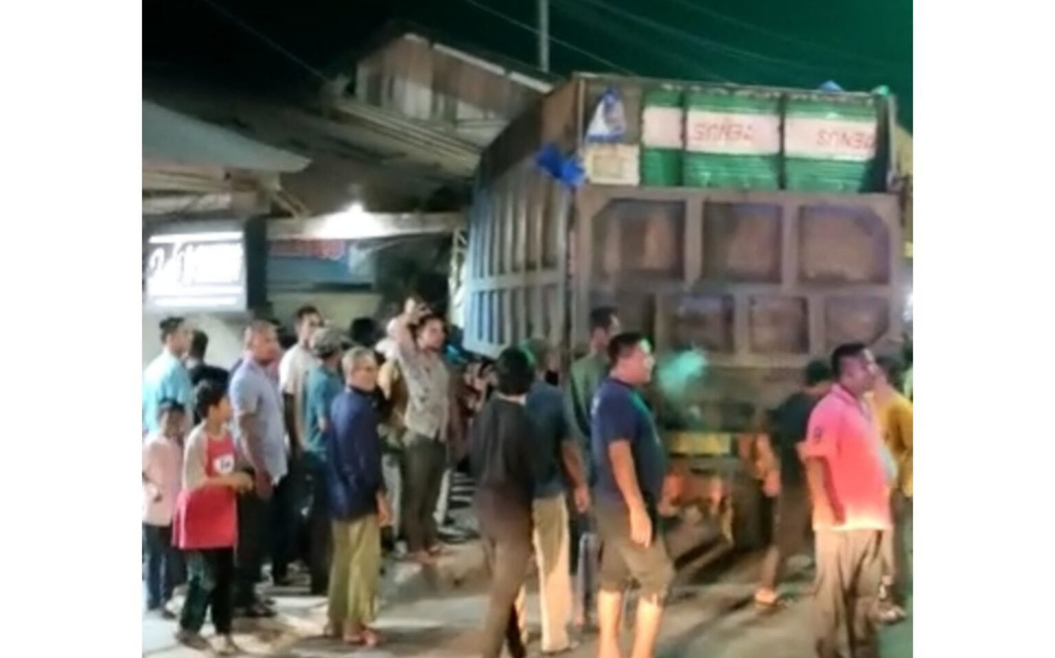 INFOACEHTIMUR.COM / Aceh Timur – Kecelakaan terjadi di jalan lintas Medan – Banda Aceh, tepatnya di Simpang 4 Kota Idi Rayeuk, Kabupaten Aceh Timur. Satu unit truk menghantam tiga toko dan tiga motor. Peristiwa terjadi pada Senin (31/1/2022) sekira pukul 21.00 WIB. Kasat Lantas Polres Aceh Timur Iptu Trisnawati mengatakan, truk BK 8427 BE tersebut disopiri oleh AN (33). Truk tanpa muatan itu awalnya melaju dari Medan (timur) ke Aceh Utara (barat). Tiba-tiba truk mengalami blong rem, sehingga menabrak tiga toko dan tiga unit motor yang parkir. Melansir Antara, Selasa (1/2/2022), insiden tersebut mengakibatkan motor rusak berat. “Tidak ada korban…