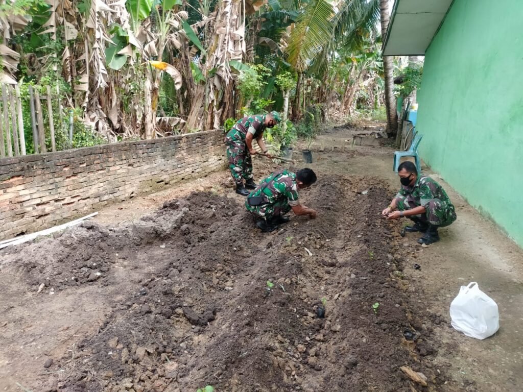 Aceh Timur | Anggota Koramil 09/Nurussalam Kodim 0104/Aceh Timur manfaatkan lahan kosong di samping Koramil dengan bercocok tanam yang akan ditanami tanaman Hortikultra sayur – sayuran, terong, cabe rawit, yang berlokasi di Markas Koramil di Desa Keude Bagok, Kecamatan Nurussalam, Kabupaten Aceh Timur, Kamis (27/01/2022). Batuud 09/Nrs Serma Mulyono yang mimipin langsung kegiatan menyampaikan adanya lahan kosong disamping Koramil bisa digunakan untuk menanam sayuran dan tanaman yang nantinya bisa dimanfaatkan hasilnya oleh seluruh anggota. “melihat areal lahan kosong, anggota berinisiatif untuk melakukan pembersihan dan penyiapan lahan yang nantinya akan kita tanami dengan terong dan cabe rawit,”ucap Mulyono. Kapten Inf Noverlan…