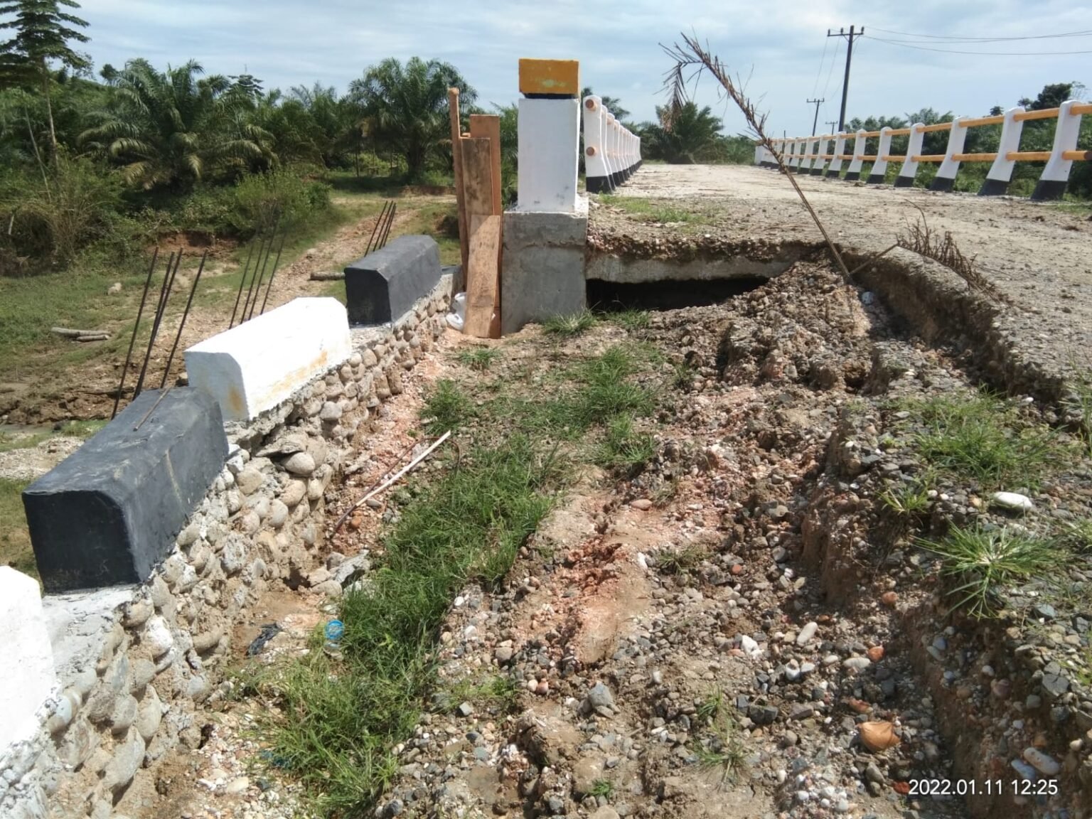 INFOACEHTIMUR.COM | Baru dilakukan serah terima/Provisional Hand Over (PHO), Proyek jembatan di Gajah Mentah, Kecamatan Sungai Raya, Aceh Timur sudah pecah. Terpantau, pekerjaan bersumber APBK Aceh Timur tahun 2021 dengan pagu kurang lebih Rp 2,7 miliyar itu pecah menganga di bagian sisi kiri talud jembatan arah menuju jalan raya. Selain itu, penimbunan terpantau kurang padat, tanahnya amblas sekitar 1 meter lebih, terkesan tidak kokoh. Keuchik Gajah Meuntah, Jumadi Selasa (11/01/2021) yang dikonfirmasi wartanusa.id mengatakan bahwa talud jembatan itu pecah diduga diterjang banjir. “Kami sudah kirimkan surat ke Kecamatan untuk ditindklanjuti/diperbaiki. Semoga segera diperbaiki dan tidak ada korban membahayakan warga saat…