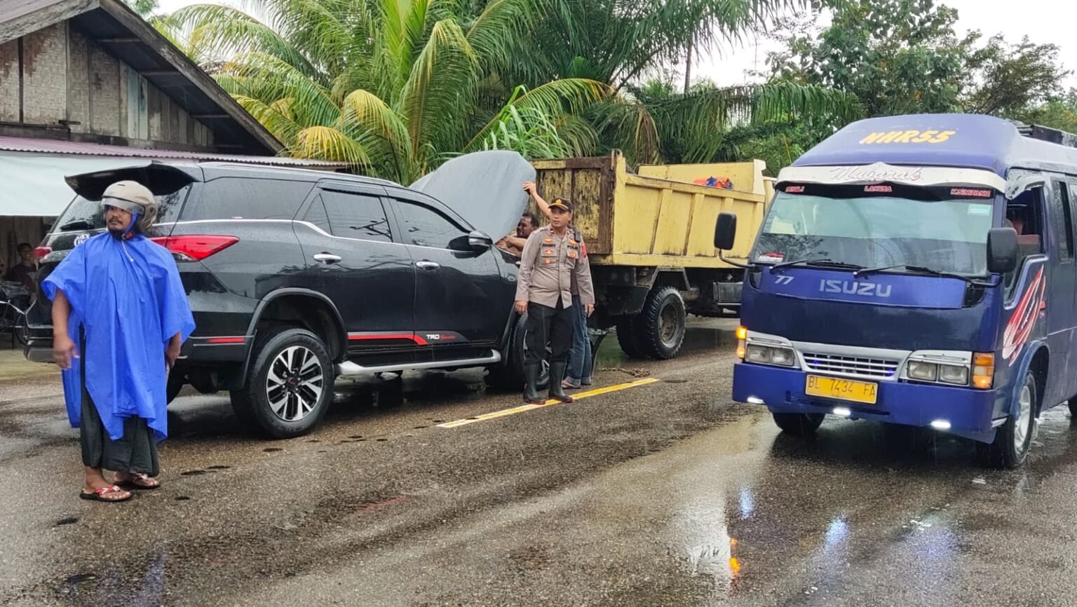 INFOACEHTIMUR.COM | Ditengah curahnya hujan, satu unit mobil jenis Toyota Fortuner dengan nomor polisi BK1849JO alami selip Ban, dan alami oleng serta menabrak Beton Jembatan. Peristiwa lakalantas tersebut terjadi di Jalan Medan – Banda Aceh Gampong Sarah Teube, Kecamatan Rantau Selamat, Aceh Timur Jum’at (31/12/2021) sekira pukul 07.35 WIB. Diketahui, pengemudi mobil Toyota Fortuner yakni Azmi (46), yang merupakan warga Kecamatan Langsa Baro, Kota Langsa. Sedangkan penumpang yakni Muhammad Hasan (75), juga merupakan warga Langsa Baro. Kasat Lantas Polres Langsa, melalui Kapolsek Rantau Selamat, Ipda Harry Prayetno S.sos, membenarkan, peristiwa lakalantas tersebut dipicu selip Ban. “Saat terselip ban, mobil Toyota…