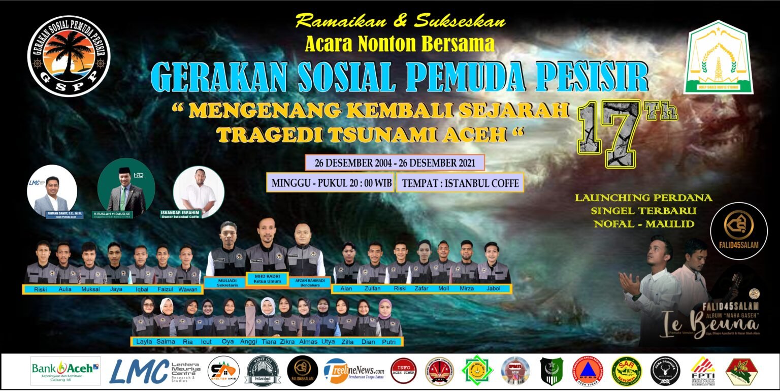 Aceh Timur | Gerakan Sosial Pemuda Pesisir (GSPP) Aceh, Tahun ini mengadakan nonton bareng video peristiwa musibah besar tsunami Aceh tahun 2004. Ketua GSPP Aceh, Muhammad Kadri, kepada infoacehtimur.com mengatakan, bahwa pihaknya mengelar acara nonton bareng ini, guna mengingat kembali peristiwa besar yang terjadi di bumi Serambi Mekkah ini. “Semoga kegiatan ini dapat mengingatkan kita akan musibah besar yang pernah terjadi di daerah kita ini. Sehingga generasi kita kedepan tidak melupakan peristiwa ini,” ujar Muhammad Kadri. Tambahnya, kedepan pihaknya dari Garakan Sosial Pemuda Pesisir Aceh (GSPP) akan melaksanakan kegiatan sosial kepada masyarakat peisir. “Isya Allah tahun depan, dalam rangka refleksi…