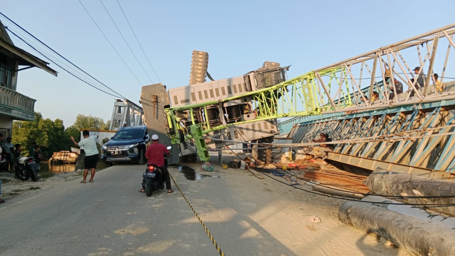 Infoacehtimur.com / Kota Langsa – Satu unit mobil Crane raksasa atau disebut (derek bergerak), terjungkal saat tengah membangun proyek jembatan penghubung ke pelabuhan Kuala Langsa, Desa Sungai Pauh, Km 5 Langsa Aceh. Akibatnya, satu orang sopir terluka parah. Peristiwa itu terjadi pada Senin, 10 April 2023 sekira pukul 17.15 WIB, akibat Crane terjungkal itu menutupi badan jalan di jembatan Km 5, yang merupakan jalan utama menuju ke Pelabuhan Kuala Langsa. Sementara mobil berbadan lebar seperti truk dan lainnya dipastikan belum bisa melintasi lokasi jembatan. Karena badan jalan tertutupi alat berat crane raksasa tersebut. Salah seorang warga Desa Sungai Pauh, Cut…