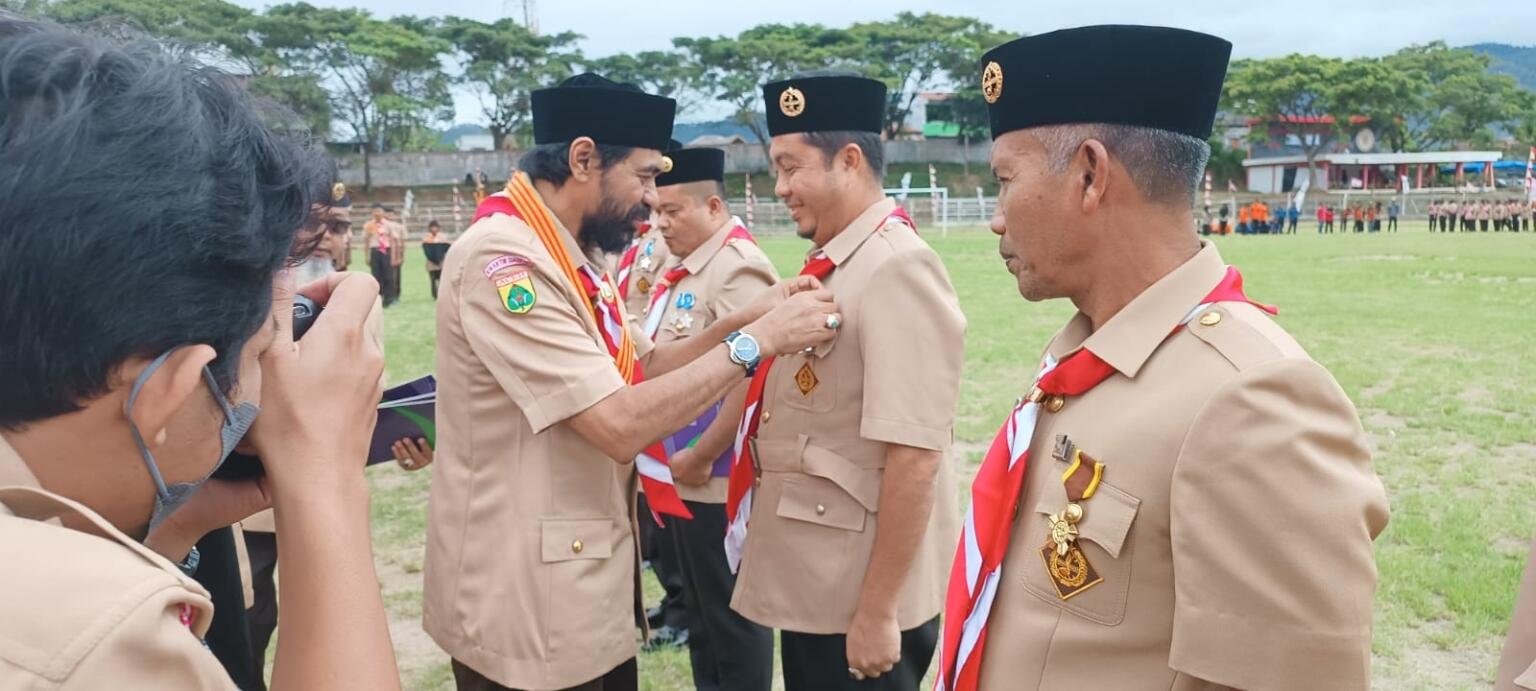 Infoacehtimur.com / Aceh Tengah – Sebagai bentuk apresiasi dan kontribusi yang begitu besar dalam membantu kelancaran kegiatan pembinaan dan pengembangan gerakan Pramuka serta kesetiaan dan keaktifannya terhadap organisasi Pramuka, Muzakir Manaf memberikan penghargaan Pancawarsa I kepada Firman Dandy selaku Sekretaris Kwarcab Gerakan Pramuka Aceh Timur. Penyematan tanda kehormatan yang diberikan langsung oleh Muzakir Manaf yang juga selaku selaku Ketua Kwartir Daerah Gerakan Pramuka Aceh ini dilakukan saat upacara peringatan Hari Pramuka ke-61 yang digelar di lapangan Musara Alun Takengon Aceh Tengah.Kamis 29/09/2022. Selaku Sekretaris Pramuka Kwarcab Aceh Timur Dr. Firman Dandy, SE. M. Si, ia merupakan salah satu penerima TPOD…
