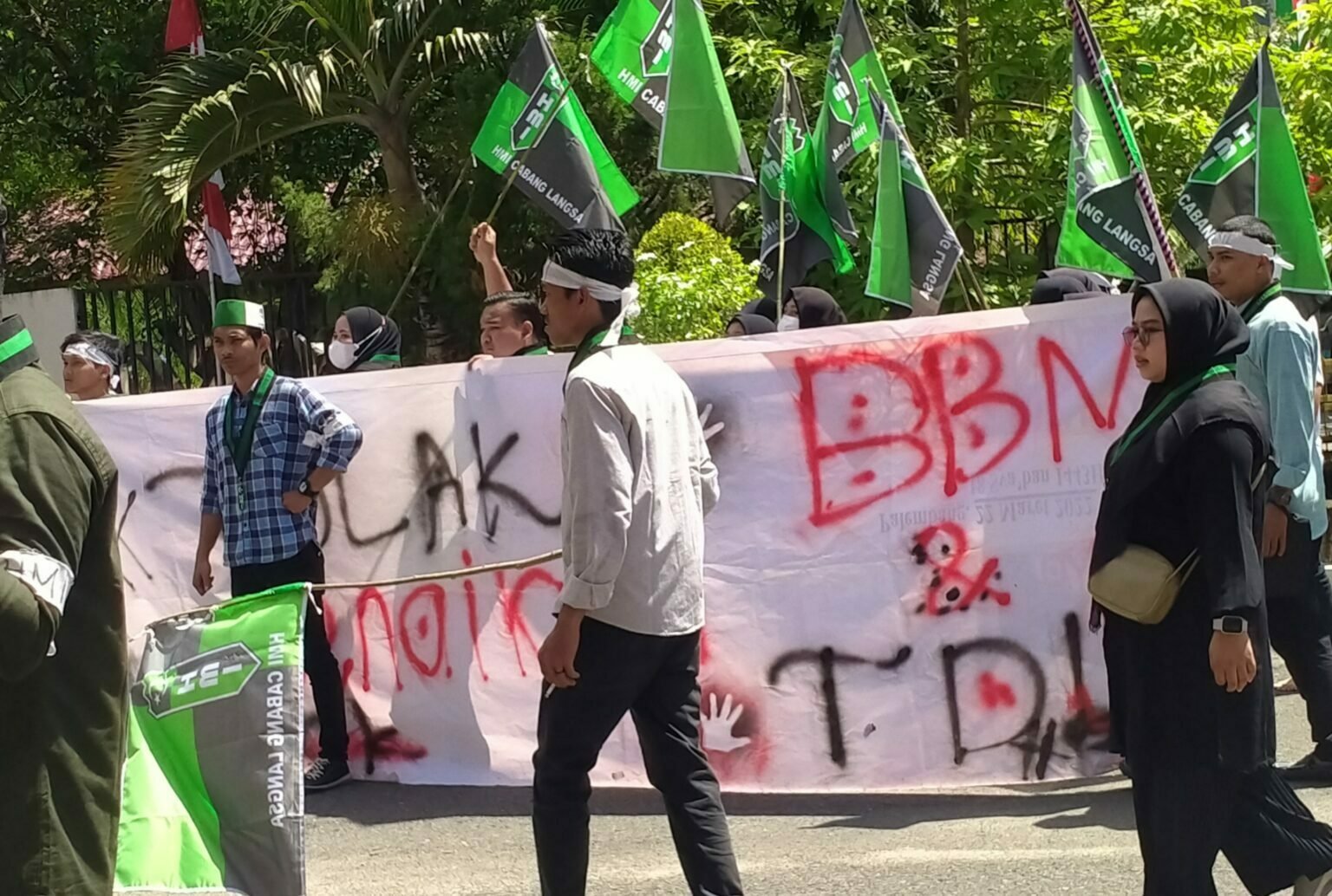 Infoacehtimur.com | Kota Langsa – Hampir mencapai ratusan mahasiswa yang tergabung dalam organisasi Himpunan Mahasiswa Islam (HMI) cabang Kota Langsa, Aceh lakukan seruan aksi tolak kenaikan harga BBM dengan menggelar demonstrasi di halaman kantor DPRK Kota Langsa pada Senin, (29/8/2022). Dalam seruan aksi yang dilakukan oleh mahasiswa tersebut menyampaikan persoalan rencana kenaikan harga BBM, dan tarif kenaikan listrik. Ketua HMI Cabang Langsa Amiruddin, mengatakan ada 5 petisi yang kami sampaikan dalam demonstrasi ini mengingat bahwa rencana pemerintah sangat menekan masyarakat yang menengah ke bawah. “Kedatangan kami hari ini dalam upaya merespon persoalan rencana kenaikan harga BBM, dan tarif kenaikan listrik…