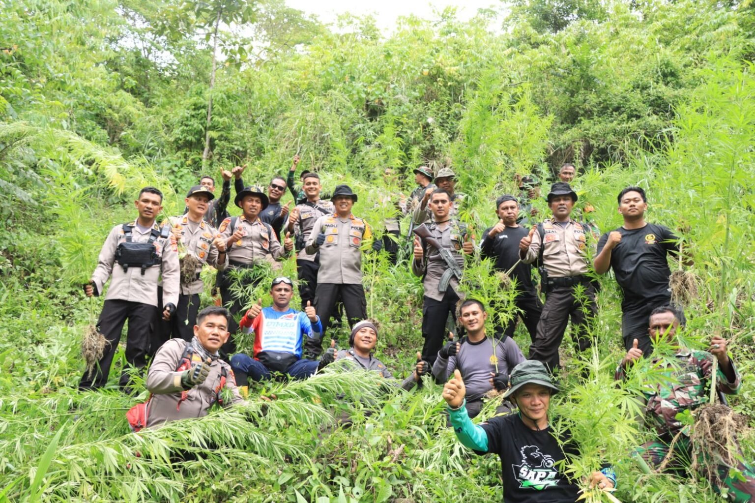 Infoacehtimur.com / Pidie – Tim gabungan yang terdiri dari Personel Polres Pidie, Polsek Tangse, dan Koramil Tangse memusnahkan ladang ganja seluas dua hektar di Gampong Kebun Nilam, Kecamatan Tangse, Kabupaten Pidie, Sabtu, 20 Agustus 2022. Pemusnahan yang dipimpin Kapolres Pidie AKBP Padli, dilakukan dengan cara dicabut dan dibakar. Pemusnahan tersebut juga bagaian dari Operasi Antik Seulawah II Tahun 2022. Padli mengatakan, pemusnahan dua hektar ladang ganja yang diperkirakan 1.500 batang tersebut merupakan keberhasilan Operasi Antik Seulawah II Tahun 2022 Resor Pidie. Dia mengajak masyarakat dan stakeholder untuk bersama-sama mencegah dan memberantas peredaran narkoba, baik sabu maupun ganja di wilayah Pidie.…