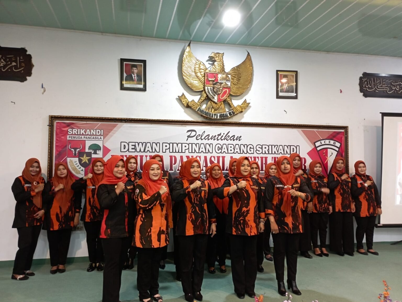 Infoacehtimur.com, ACEH TIMUR – Srikandi Pemuda Pancasila Aceh Timur dilantik pada Sabtu (22/07/2023) di Idi Rayeuk, Aceh Timur. Pelantikan yang diselenggarakan di Pendopo Bupati itu berlangsung khidmat dan terlaksana dengan penuh rasa antusias dari para kader. Pengurus Srikandi Pemuda Pancasila Aceh Timur dipimpin oleh Debby Widya sebagai ketua dan Lisma Sari sebagai wakil ketua. Sementara posisi Sekretaris dijabat oleh Zainita dan Wirdayani sebagai wakilnya. Raihanum dipercayakan sebagai bendahara dan Nurhafidhah sebagai Wakil Bendahara. Organisasi Srikandi Pemuda Pancasila Aceh Timur memiliki sejumlah 11 Bidang yang diisi oleh puluhan jumlah anggota masing-masing bidang.