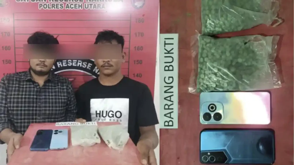 Infoaccehtimur.com | Aceh Utara – Dua pria, Sya (24), warga Gampong Alubu Tunong, Peureulak Timur, Kabupaten Aceh Timur, dan Nas (21), warga Batuphat Timur, Kecamatan Muara Satu, Lhokseumawe, kembali menjalani sidang di Pengadilan Negeri (PN) Lhoksukon, Aceh Utara, terkait kasus dugaan transaksi pil “ekstasi”. Hasil pemeriksaan laboratorium menyatakan pil yang disita tidak mengandung narkotika atau psikotropika, melainkan zat Theophylline dan Trihexyphenidyl yang termasuk sediaan farmasi. Sya dan Nas ditangkap pada 21 September 2025 karena diduga terlibat dalam transaksi pil “ekstasi” di kawasan SPBU Geudong, Kecamatan Samudera, Kabupaten Aceh Utara. Polisi menyita 1.350 butir pil berwarna hijau dengan berat netto 602…