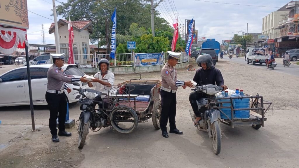 Infoacehtimur.com, Aceh Utara – Kepala Urusan Pembinaan Operasi (KBO) Lantas Polres Aceh Utara, Ipda Irvan, melakukan aksi sosial dengan membagikan 130 nasi kotak kepada masyarakat kurang mampu di Lhoksukon. Kegiatan ini merupakan bagian dari Program Gerakan Berbagi Sepuluh Ribu (Geubibu) yang telah berjalan sejak 2019. Kegiatan yang bertujuan untuk membantu meringankan beban hidup masyarakat miskin dan kurang mampu di Aceh Utara. Kegiatan tersebut diisi dengan pembagian nasi kotak kepada tukang becak, ojek, pedagang kaki lima dan kaum duafa, pembangunan sumur cincin untuk anak yatim dan Pemberian Alquran dan kitab kepada santri dari keluarga miskin. Ipda Irvan mengatakan, “Kami ingin berbagi…