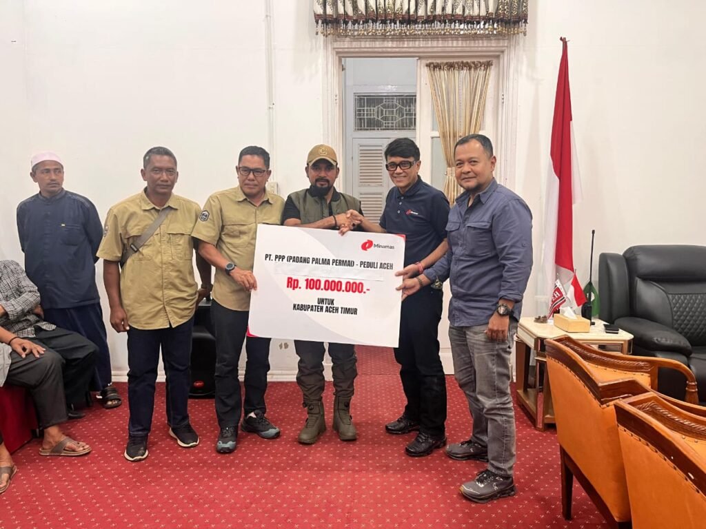 Infoacehtimur.com, Aceh Timur – Dalam aksi solidaritas yang menginspirasi, Minamas Plantation melalui PT Padang Palma Permai menyalurkan bantuan kemanusiaan senilai Rp100 juta bagi warga terdampak banjir di Kabupaten Aceh Timur. Bantuan tersebut diserahkan kepada Pemerintah Kabupaten Aceh Timur melalui Posko Peduli Aceh Timur pada 24 Desember 2025, menjadi bukti nyata komitmen perusahaan dalam mendukung pemulihan masyarakat. CEO Minamas Plantation, Azmi Jaafar, menegaskan bahwa perusahaan tetap memprioritaskan kepedulian sosial terhadap masyarakat sekitar, meskipun banjir juga berdampak pada aktivitas dan operasional perusahaan. Baca Juga: Kalapas Kelas IIB Bireuen Salurkan Bantuan Banjir Baca Juga: PDIP dan BMI Salurkan Bantuan Banjir Keplosok Aceh Timur…