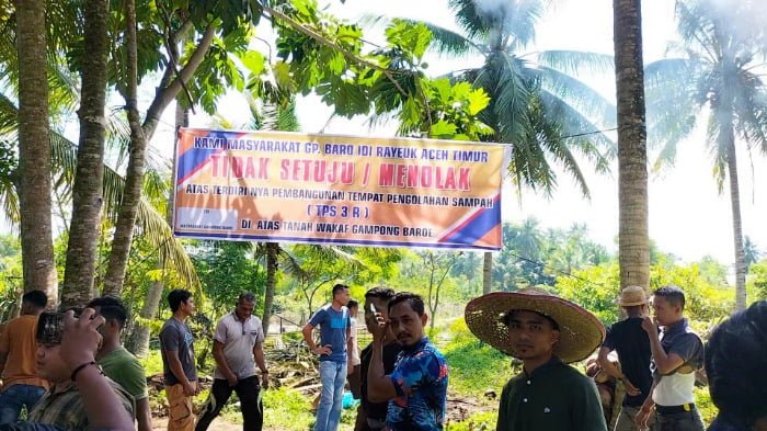 Info Aceh Timur / Idi Rayeuk – Warga Gampong Baroe, Kecamatan Idi Rayeuk, Aceh Timur menyatakan menolak pembangunan Tempat Pengolahan Sampah 3R pada rabu (07/06/2023. Penolakan dilakukan oleh puluhan warga dengan cara memsanga spanduk protes dan membongkar tiang/patok yang digunakan sebagai titik tanda pembangunan TPS 3R di tanah wakaf. Salah satu perwakilan pemuda saat di wawancara oleh tim infoacehtimur.com mengatakan “kami menolak pembangunan TPS 3R yang akan di bangun di desa kami (Gampong Baroe) “, katanya. Tak hanya itu, para warga juga meminta ganti terhadap sejumlah pohon kelapa yang telah ditebang oleh pekerja pembangunan TPS 3R tersebut. Keusyik Gampong Baro…