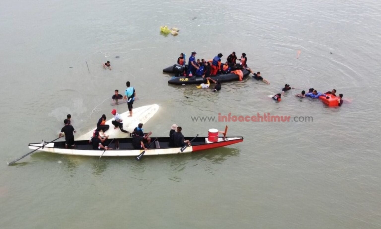 Infoacehtimur.com / Pidie – Speed boat yang mengantarkan Pj. Bupati, Ir. Mahyuddin dan Ketua KONI Aceh Timur, Dr. Firman Dandy untuk mengunjungi atlet dayung yang sedang bertanding terbalik di sungai Kuala Pasi Jemeurang, Kecamatan Kemang Tanjong, Kabupaten Pidie, pada Minggu (18/12/2022). Insiden itu terjadi saat Pj Bupati dan Ketua KONI Aceh Timur hendak melihat secara langsung Atlit Dayung yang sedang bertanding di ajang Final PORA Ke-XIV Pidie 2022. Menurut Waliul Chalidin, selaku Ketua PODSI Aceh Timur yang juga berada dalam boat mengatakan bahwa Kejadian naas itu diduga akibat kelebihan muatan. Baca juga: “Didalam nya ada Pak Pj Bupati, Ketua KONI,…