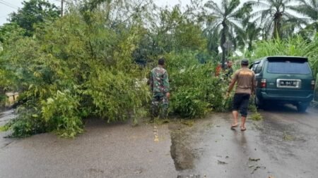 Infoacehtimur.com / Aceh Timur – Koptu Nunung Babinsa Koramil 03/Rantau Seulamat Kodim 0104/Atim bersama warga melakukan gotong royong evakuasi pohon…