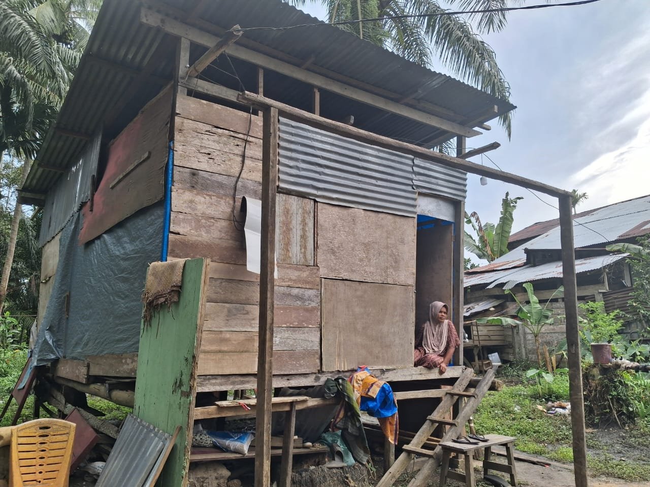 Gubuk kecil itu, yang terlihat hancur dan tidak layak huni, menjadi tempat yang hangat dan penuh kasih bagi Faridah dan anaknya.