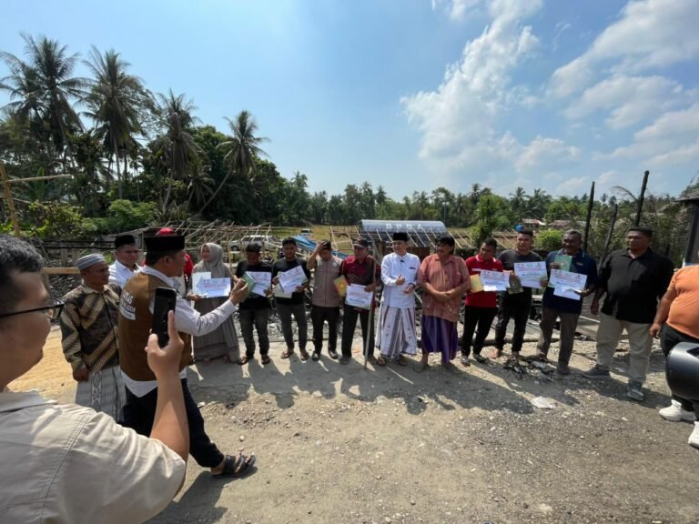 Bantuan berupa uang tunai Rp8 juta dan Rp3 juta — diserahkan langsung oleh Ketua Badan Baitul Mal Aceh Tgk Muhammad Yunus M. Yusuf, SH, kepada masing-masing kepala keluarga yang terdampak.