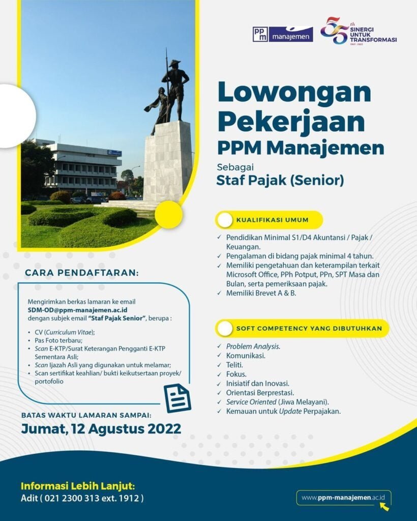 Infoacehtimur.com, Loker – Hai Sobat yuk bergabung bersama PPM Manajemen. Saat ini membuka peluang bagi Anda untuk bisa bergabung sebagai Staf Pajak (Junior) dan Staf Pajak (Senior).