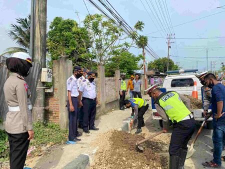 Antisipasi Terjadinya Kecelakaan,Satlantas Polres Aceh Timur dan Dinas perhubungan Bersihkan Material Pasir di Jalan Nasional Aceh Timur | Personel dari…