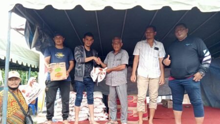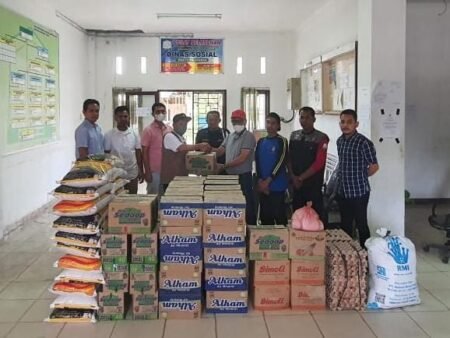 Aceh Timur | Babinsa Koramil 09/Nurussalam Kodim 0104/Aceh Timur Serda Muhammad Agus bersama perangkat Desa menyerahkan bantuan berupa sembako kepada…