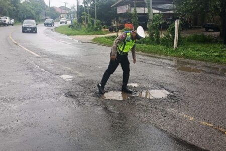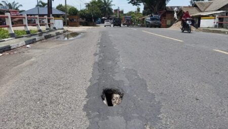 Infoacehtimur.com, Nasional – seorang wanita yang difoto bak model di jalan yang rusak. Bukan tanpa alasan, ia melakukan hal tersebut…
