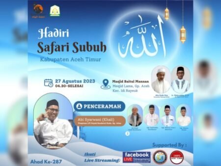 Info Aceh Timur / Idi Rayeuk – jangan lewatkan. Insya Allah Safari Subuh Ahad ke-287 Aceh Timur akan dilaksanakan di…